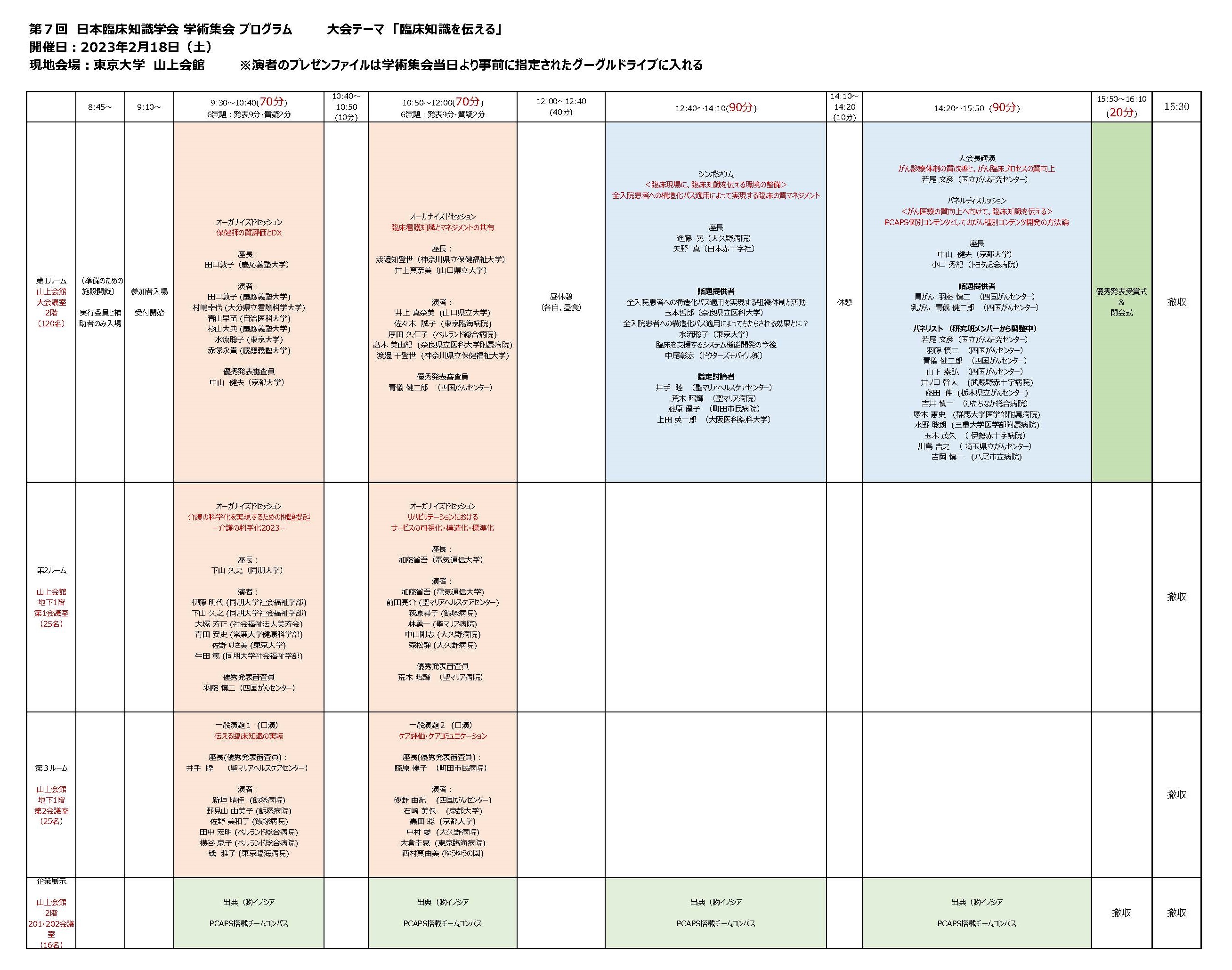 ※ご発表者のプレゼンファイルは、事前アップロードのみです。当日のご対応はできません。アップロードの締め切りは「2月15日」です。その後の差し替えには対応できません。ご協力よろしくお願いいたします。アップロード先はご発表者宛てに別途ご連絡いたします。